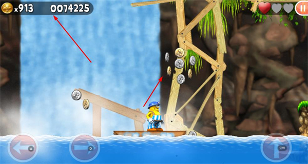 3、跨越水域类障碍继续探索,在新场景中收集金币,持续提升资源积累的效率。