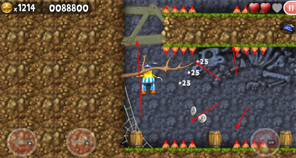 4、在危险区域中避开障碍,收集散落在场景内的金币,推进游戏进程积累更多资源。