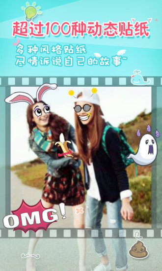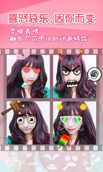 AR+人脸识别技术,让贴纸和道具随着你的表情或动作变幻样式,戳戳屏幕,更能轻松体验到传说中的“视频交互”乐趣!