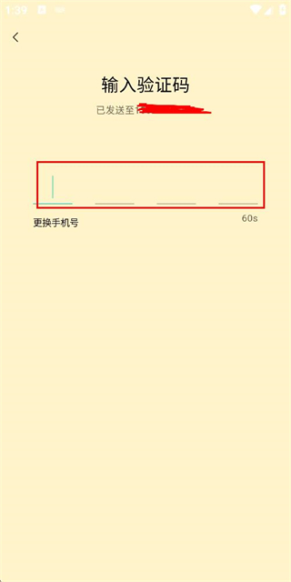 5、在输入短信验证码页面填写收到的验证码,完成账号的登录操作。