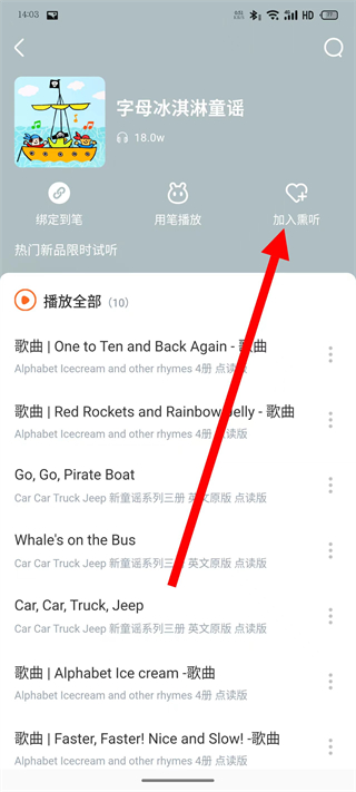 4、在内容详情页面,点击加入熏听,完成收藏。