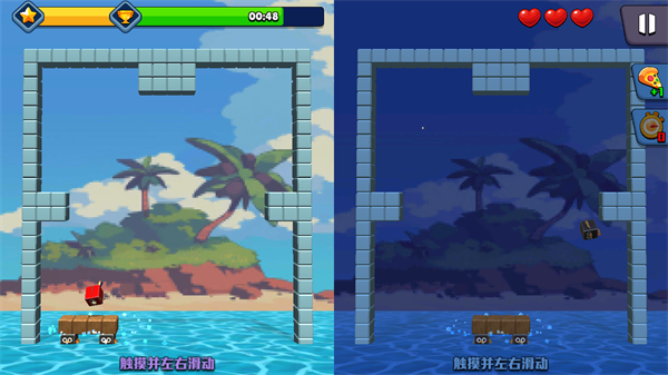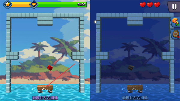 2、进入1-1关卡后,按照提示触摸并左右滑动来操控相关物体,以此推进关卡的进程。