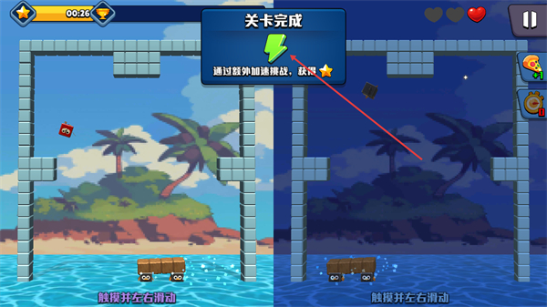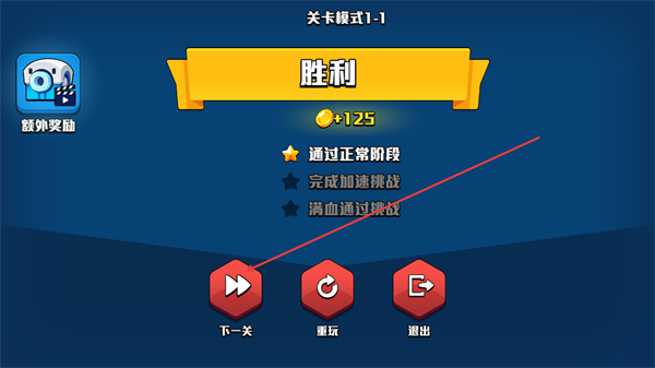 3、关卡进程结束后出现关卡完成提示,此时获得了额外加速挑战的星,这是完成该挑战的奖励反馈。