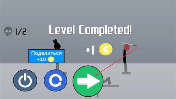 4、击败足够数量火柴人后,关卡完成点击界面中的绿色箭头按钮,即可进入下一个关卡继续游玩。