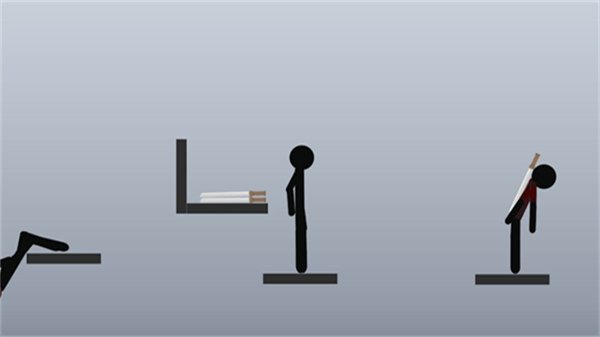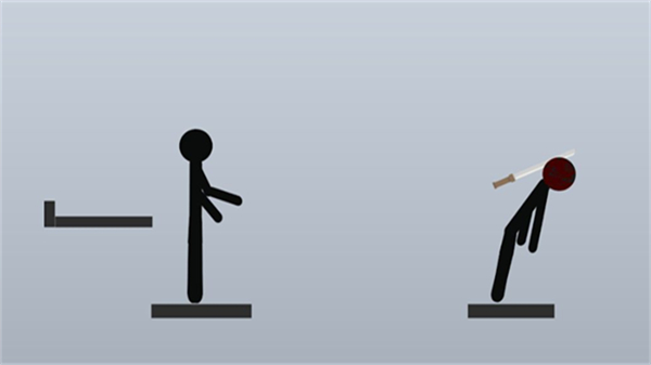 3、调整好火柴人位置后,再次触发动作其会用武器攻击目标火柴人,击中后目标会出现受伤效果,推进关卡进度。
