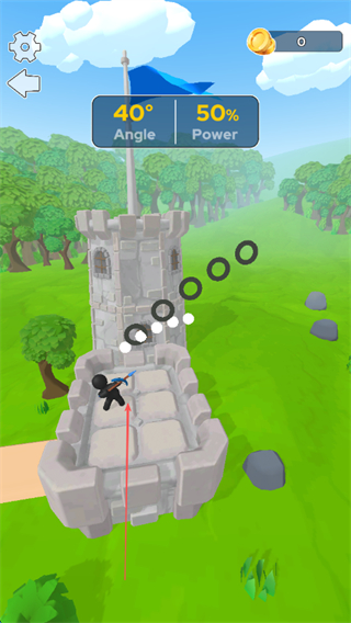 1、调整Angle为40°、Power为50%,准备发射箭矢。
