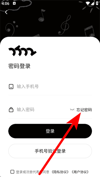 3、在密码登录页面,点击忘记密码,进入忘记密码页面。