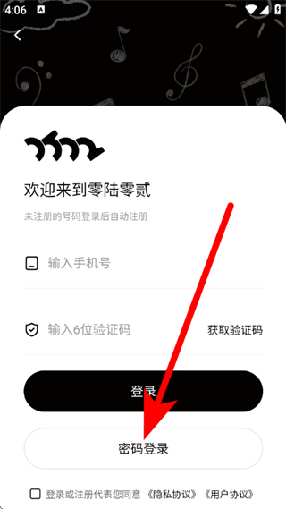 2、在登录页面,点击选择密码登录,进入密码登录页面。
