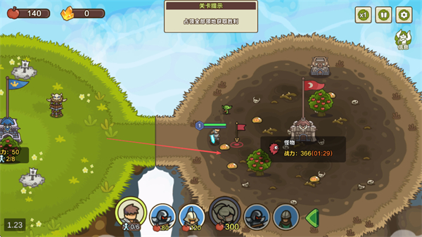 4、持续占领敌方地块,提升己方势力,推进关卡进度。