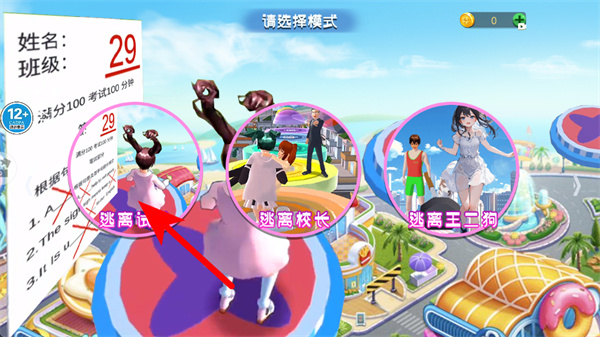 1、选择界面后,点击红色箭头指向的逃离远模式,开启对应的逃离关卡,这是进入游戏的关键操作。