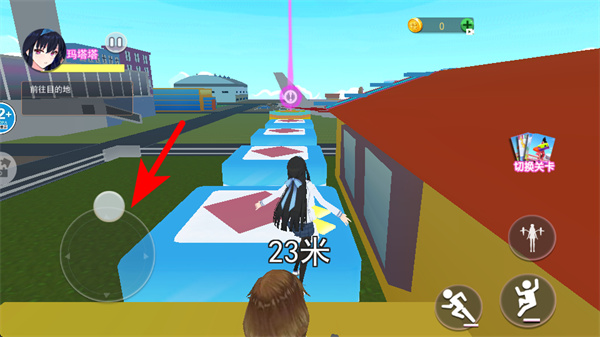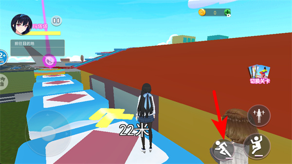 3、遇到障碍时,点击红色箭头指向的奔跑按钮,加快角色移动速度,快速通过危险区域。