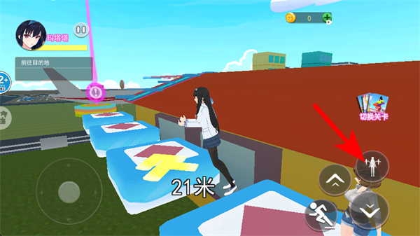 4、后续可点击红色箭头指向变身类按钮,切换角色状态如体型,适配不同场景的通过需求,推进进度。