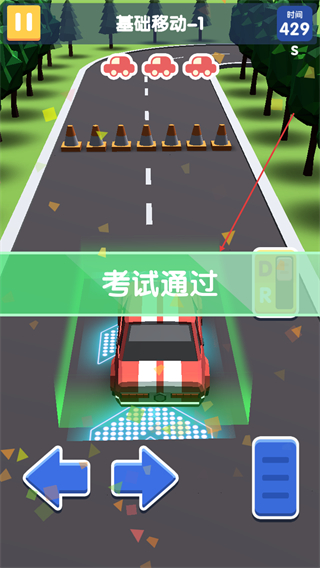 4、完成驾驶任务后,显示考试通过,顺利通关该关卡。