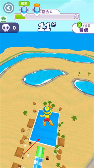 3、滑道结束后,角色会进入沙滩场景,操控角色在沙滩区域内移动,避开障碍物。