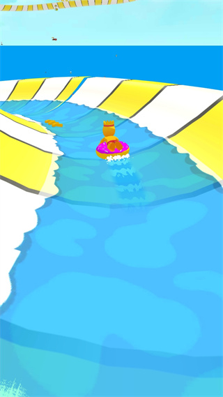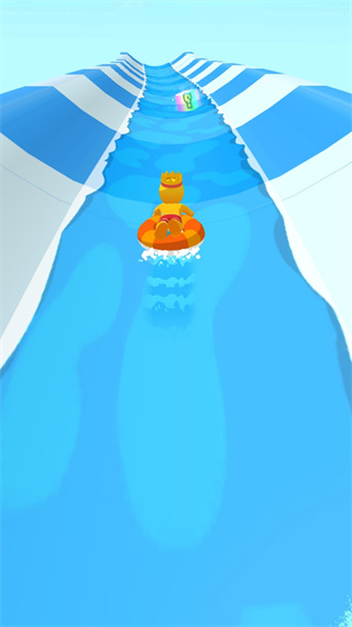 2、进入游戏后,操控角色乘坐泳圈在水滑道中前进,跟随滑道方向调整移动轨迹。