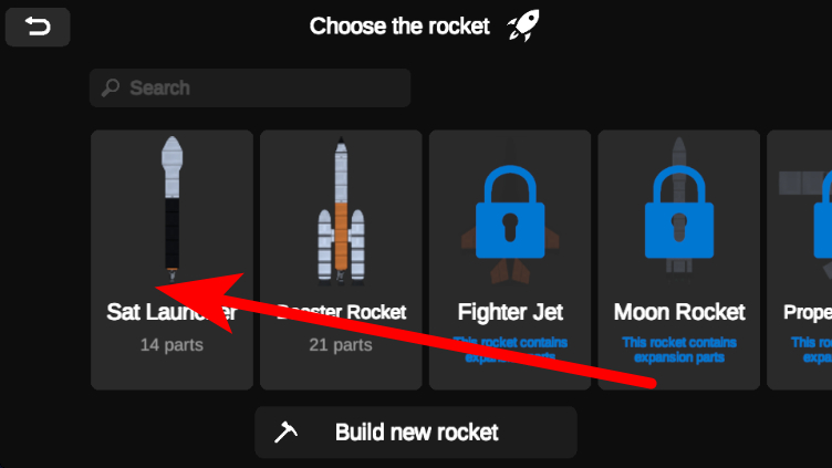 1、在火箭选择页面,点击SatLaunch火箭,进入对应建造界面。