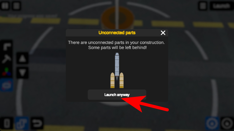 4、部件拼接完成后点击Launchanyway,继续火箭发射流程。
