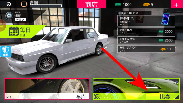 1、在商店界面点击比赛按钮,进入赛事准备的相关界面。
