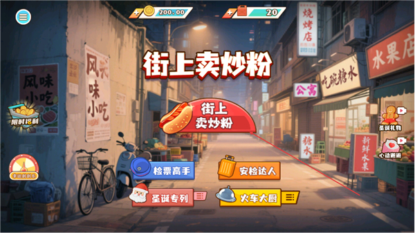 街上卖炒粉是一款脑洞大开的移动美食摊模拟作品,打破传统街边摆摊的固定场景限制,将美食战场搬到行驶的列车上,玩家化身硬核美食制作大师,在晃动的车厢与有限空间里,为形形色色的乘客烹制煎饼、牛排、烧烤等多样美味,既要把控烹饪火候保证口感,又要争分夺秒满足乘客需求,体验一场充满烟火气的移动美食经营之旅。