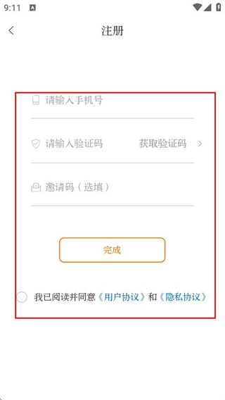 4、进入注册页面后,填写信息后勾选协议后点击完成即可完成注册。