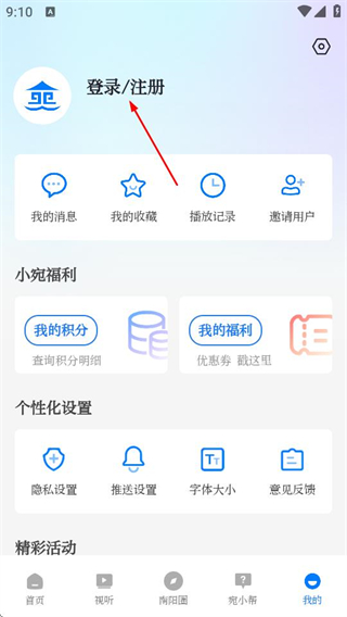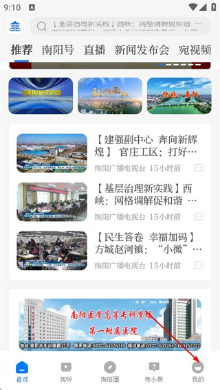 1、在云上南阳首页,点击底部我的可进入软件个人中心。
