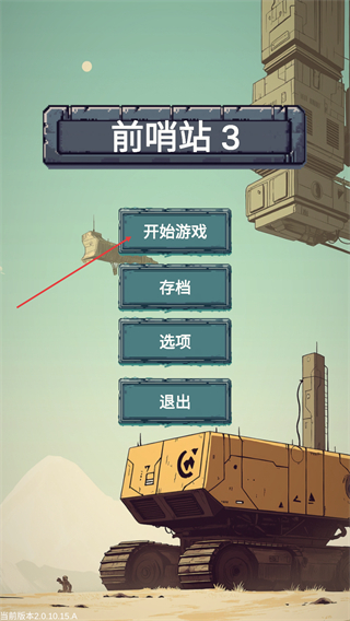 1、从主界面可见,开始游戏是进入防御关卡的入口,存档可保存当前进度,选项用于调整设置,点击开始游戏即可进入到场景。
