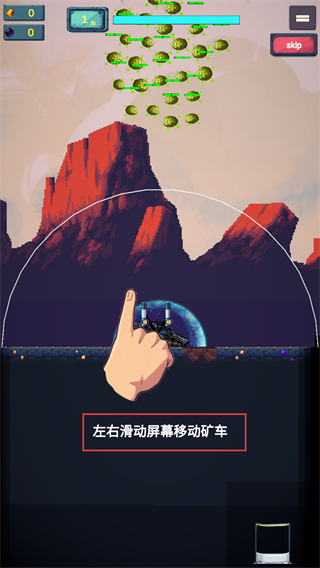 2、根据新手引导提示,通过左右滑动屏幕可控制矿车位置,矿车是防御核心单位,移动它能灵活调整射击覆盖范围。