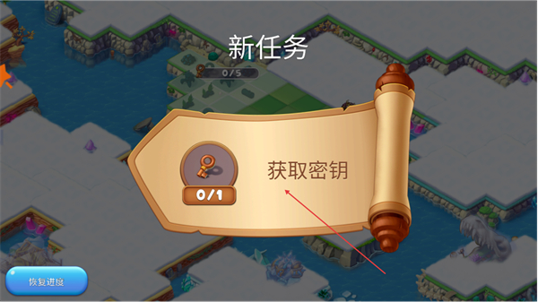 1、接取获取密钥新任务,明确需收集1个密钥的目标。