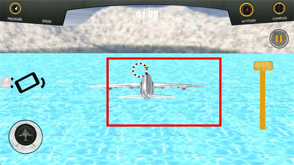 3、飞行操控:借助左侧的驾驶按钮调整飞行姿态,保持飞机平稳,完成关卡要求。