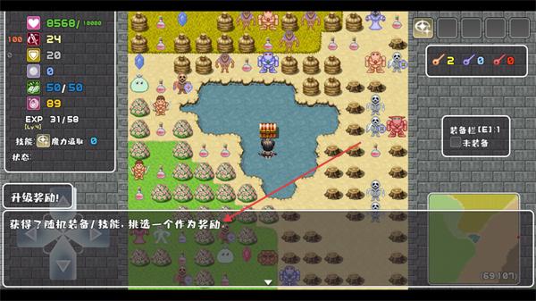 3、开启宝箱后达成升级条件,触发宝箱奖励,可从随机装备/技能中选择一个作为本次的奖励。