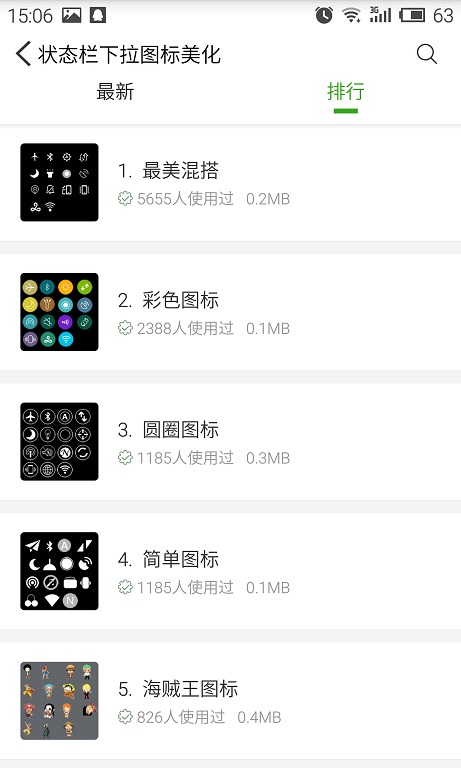 4 资源主题:这个主要是用来美化状态栏的 可以单独替换信号 电量 wifi 还有状态栏下拉的图标等 自己可以摸索