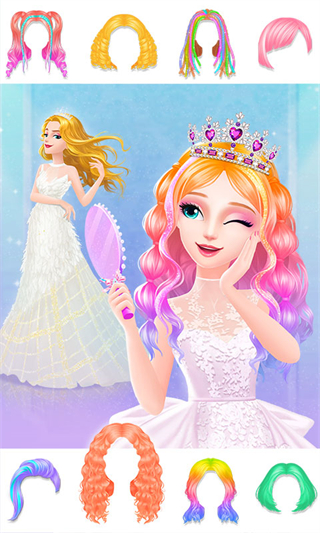 2、多元化发型设计自由定制,涵盖长发、短发、卷发等多种基础款式,还能搭配染色、编发、配饰等细节装饰,满足不同风格的造型需求,打造独一无二的公主形象。