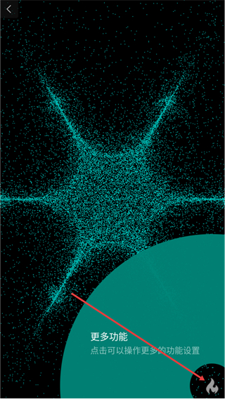 2、进入粒子展示界面后,找到右下角的火焰图标,点击该图标就能打开更多功能的操作菜单,以便进行后续设置。