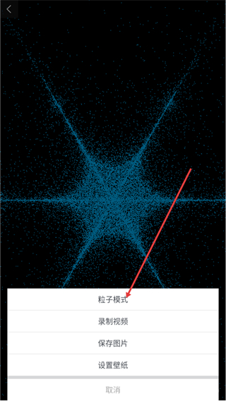 3、在打开的更多功能菜单里,选择粒子模式选项,即可切换当前展示粒子的显示模式,调整其展示的效果样式。