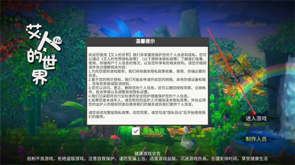 1、在艾人的世界的主界面,勾选隐私协议选项后,点击进入游戏按钮,即可进入游戏的主界面。