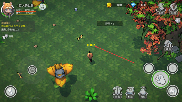 3、完成采集后,将获得野果+1的道具奖励与经验+2的成长奖励,同时角色体力会对应消耗。