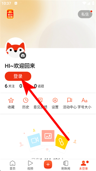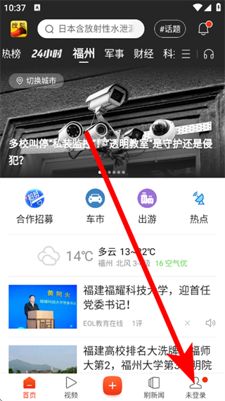 1、打开搜狐新闻,点击底部未登录,切换至个人页面。