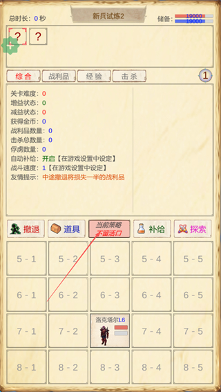 2、战斗后点击当前窗口,进入下一关新兵试炼2的准备界面。