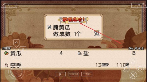 4、完成制作操作后,出现料理成功提示,即表示腌黄瓜已成功做成1个,可获得该料理道具。