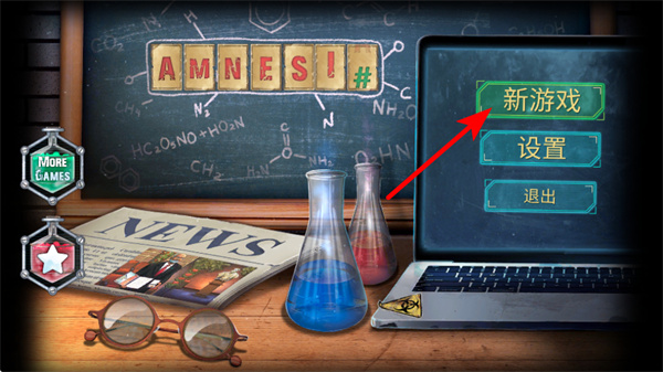 1、进入游戏主界面后,点击红色箭头指向的新游戏按钮,开启游戏的剧情冒险,进入游戏操作。