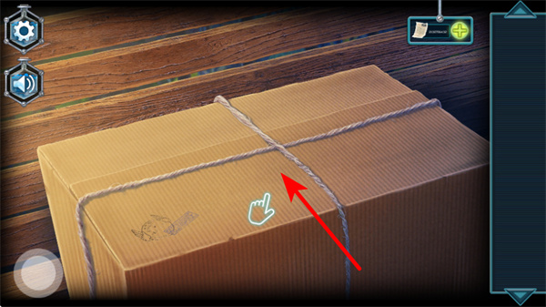 4、在场景中发现可互动物品如纸箱时,紧跟红色箭头指引,点击该物品进行互动,道具收集剧情发展。