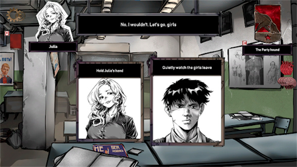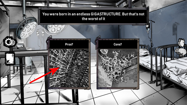 屏幕右侧的“心脏”(感性)与“大脑”(理性)数值会随选择变化,部分抉择会消减或增加对应数值,数值平衡影响剧情走向与角色状态,增添决策策略性。