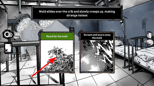 3、面对剧情选择如Reach for the mold时,跟随红色箭头提示,点击对应的选项,触发选择对应走向。