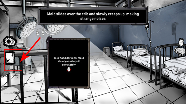 4、剧情推进后,紧跟红色箭头指引,点击左侧的书本交互区域,查看后续剧情文本,继续推进游戏流程。