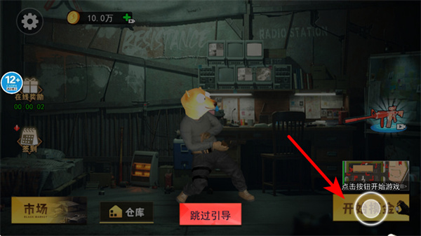 1、进入游戏主界面后,点击红色箭头指向的开始摸金按钮,开启战斗摸金玩法流程,进入游戏的关键操作。