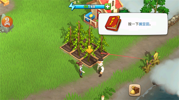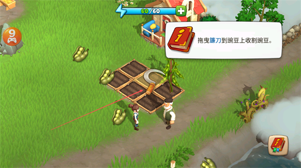 3、使用镰刀收割成熟的豌豆,获取农作物道具。