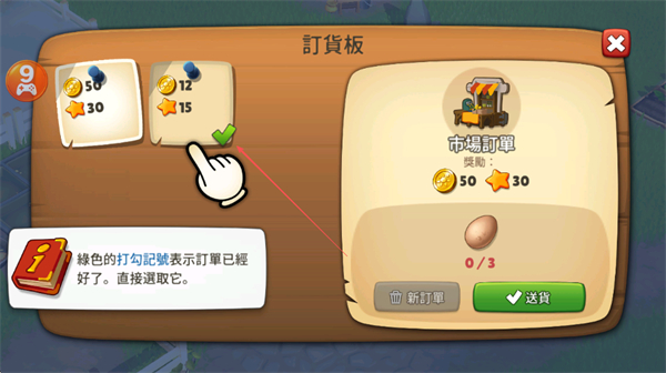 4、在订货板中,确认完成的订单,点击领取对应的奖励。