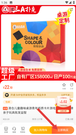 4、在商品详情页面,点击立即购买按钮,可进行该商品的购买操作。