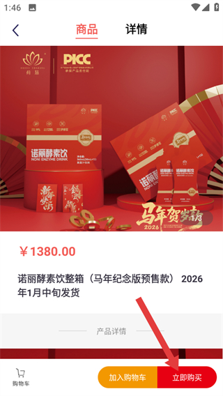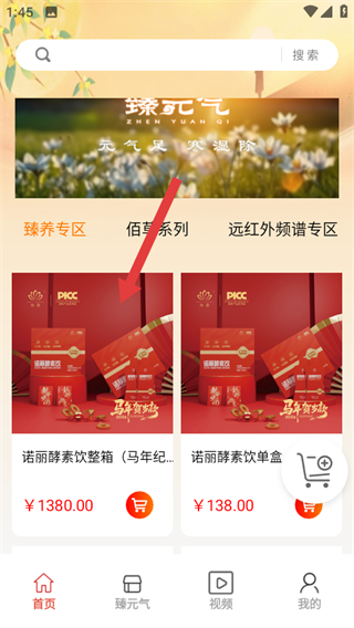 1、进入臻元气页面,找到臻养专区下的目标商品,可查看商品展示信息。