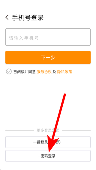 1、打开小店掌柜,在手机号登录页面,点击密码登录,进入账号密码登录页面。
